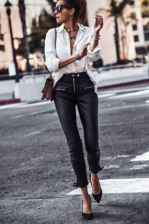 Ce pantalon en cuir tendance, fabriqué dans une version mate, aura un look incroyablement élégant et novateur. Un éclat de peau plaira aux modèles de pantalons-bananes et de palais. Choisissez un pantalon en cuir sombre ou noir, et faites attention aux pantalons en cuir aux couleurs claires et pastel qui seront attrayants.