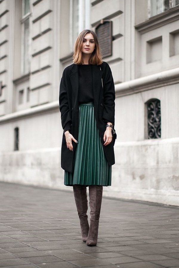 L'élégance avant tout - on peut dire avec certitude que les jupes à la mode automne-hiver sont à plis.En tant que chef de file parmi les modèles de jupes pour dames, les plis à la mode défilent sur les premières positions dans la longueur du midi, ainsi que sur le sol. D'excellentes jupes d'automne et d'hiver sont fabriquées dans des teintes merveilleuses avec un éclat métallique et plus encore. Vous rencontrerez les meilleures jupes d'automne-hiver plissées plissées en maille, velours de laine, laine fine, idéales pour la saison fraîche.