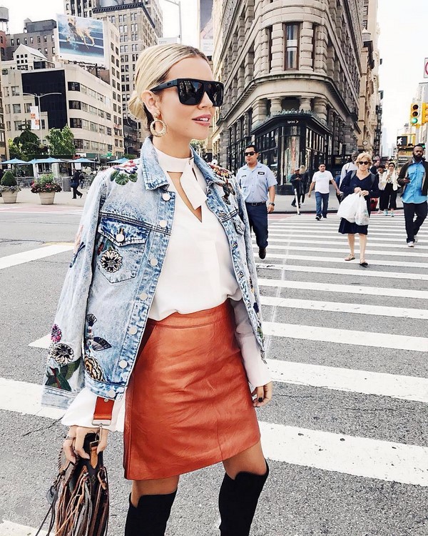 Vous pouvez organiser des jupes à la mode avec presque tous les top: la règle générale est que si la jupe est duveteuse, il est préférable de choisir une coupe ajustée. Un mini est parfaitement à la mode pour compléter des chandails surdimensionnés ou des chemisiers et des chemises.