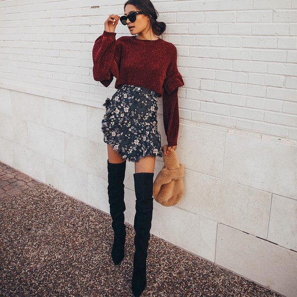 Vous pouvez organiser des jupes à la mode avec presque tous les top: la règle générale est que si la jupe est duveteuse, il est préférable de choisir une coupe ajustée. Un mini est parfaitement à la mode pour compléter des chandails surdimensionnés ou des chemisiers et des chemises.