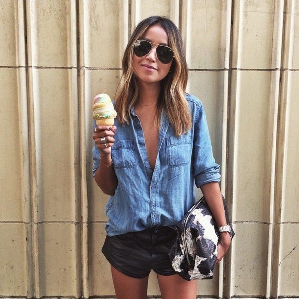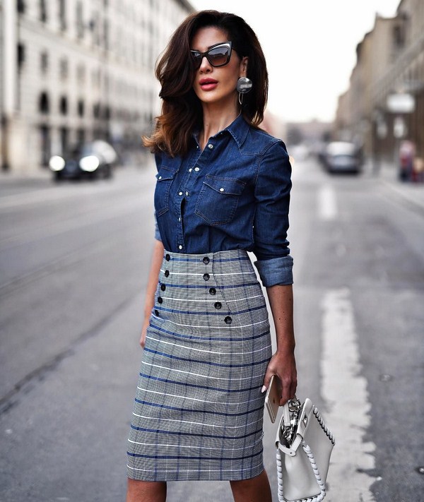 Vous pouvez également porter des chemises en jean 2025-2026 avec d'autres vêtements en jean, ainsi que des combiner avec des shorts et des jupes de styles différents - en cuir, à carreaux et à rayures. Des looks inspirants avec des chemises 2025-2026 sont montrés plus ...