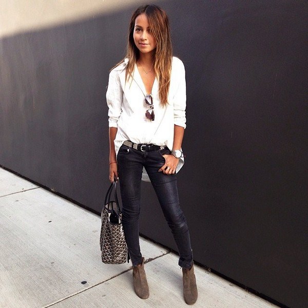 Des chemises élégantes peuvent être portées, à la fois en litige et à l'intérieur, en fonction de l'image. Il est préférable de porter des chemises extra longues sur un jean, complétées par une épingle à cheveux ou des chaussures à talons hauts.
