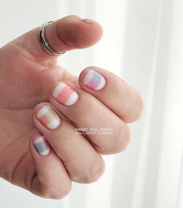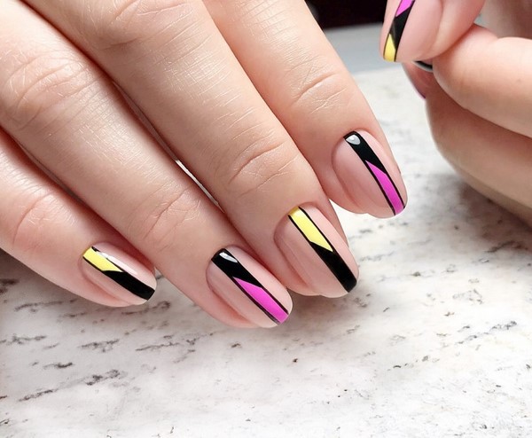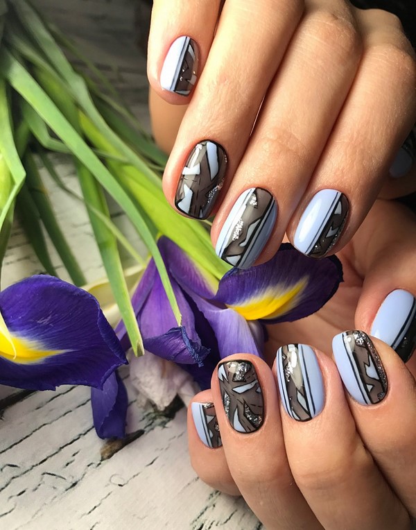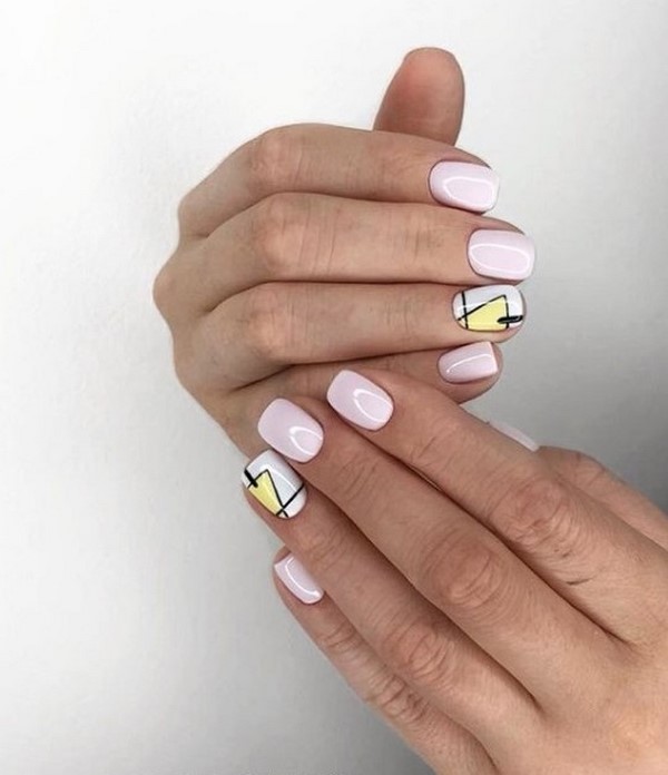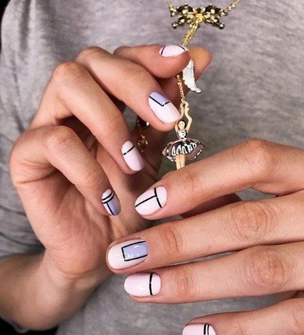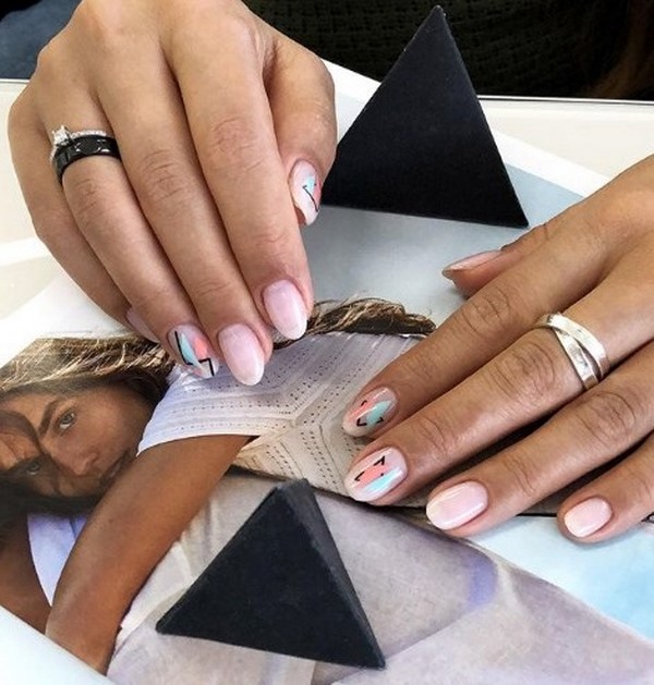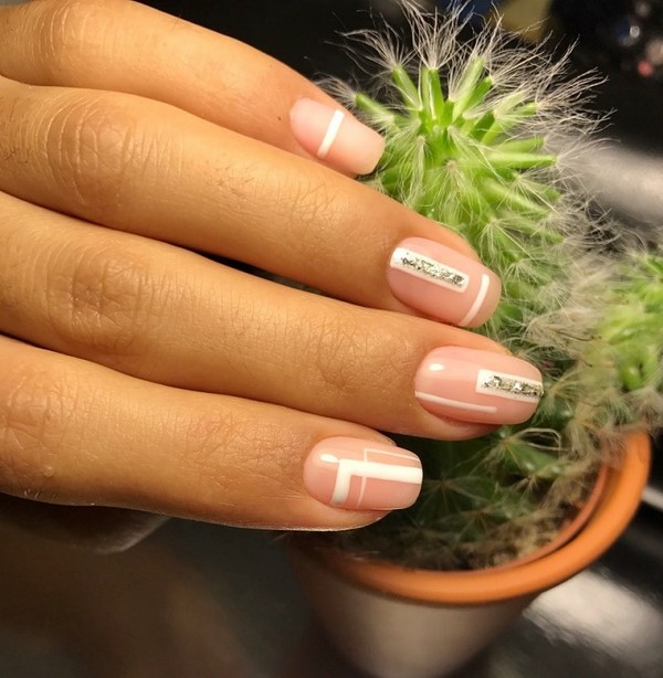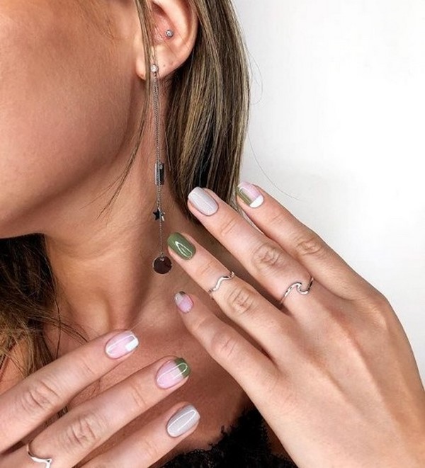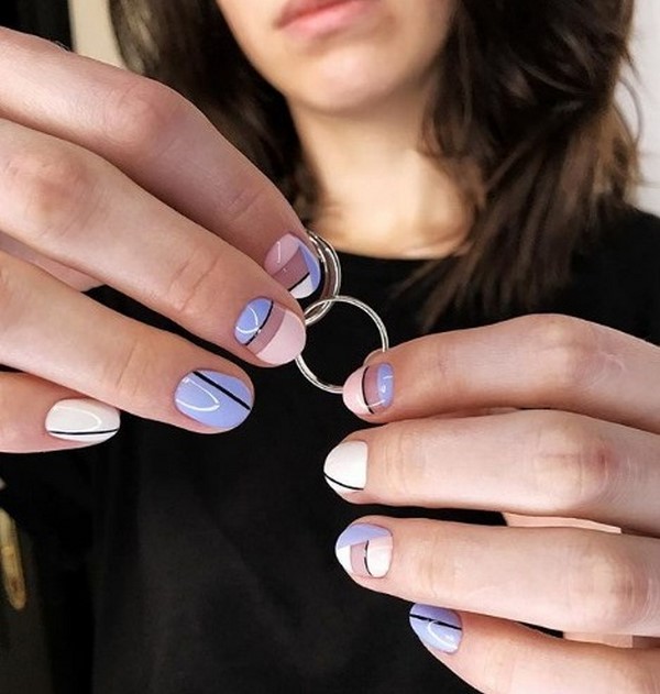 Les motifs graphiques semblent sans prétention et plus que concis, ce qui vous permet de porter une manucure de printemps à la mode au bureau pour compléter une tenue professionnelle et n'importe où. Décorez la manucure à géométrie de ressort mégastile avec du mica brillant, quelques lanières de papier d'aluminium ou des morceaux de papier d'aluminium ressemblant à du verre, qui transformeront étonnamment votre nail art printanier à la mode.