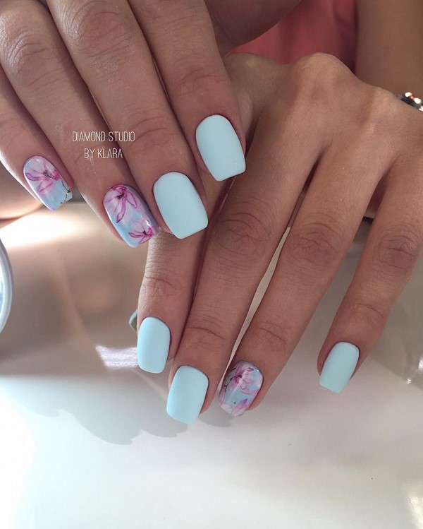 Manucure incroyable printemps bleu.