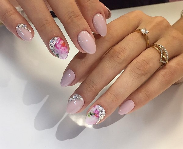 Après avoir ajouté un petit éclat sous forme de strass, de papier d'aluminium, de paillettes et de frottement pour la manucure, vous pouvez créer une manucure de soirée chic pour le printemps dans une performance festive.