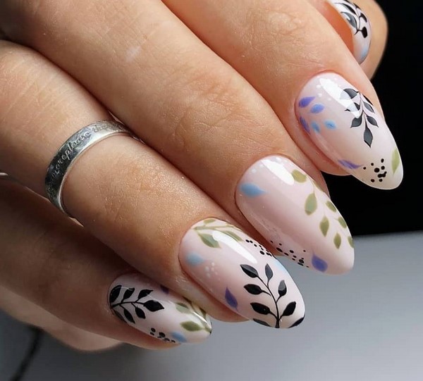 La tendance principale de la conception des ongles au printemps 2025-2026 sera les brindilles, les folioles, ainsi que les visages dans les yeux. Les motifs floraux du décor printanier des ongles ne passeront pas non plus inaperçus.