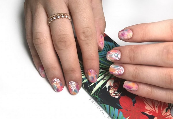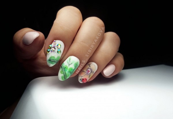 Les produits décoratifs pour les ongles ont de nombreuses représentations, mais l’un des meilleurs pour le printemps sera celui de la manucure. Dans votre arsenal, il est également possible de traduire, compresser, des bandes, des bandes et des morceaux d'arc-en-ciel en forme de "verre brisé" ou de kamifubuki. Printemps de la mode manucure avec feuille Il deviendra super stylé et spectaculaire, captivant avec des ongles printaniers brillants.