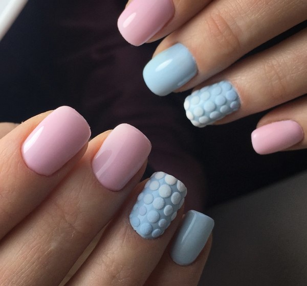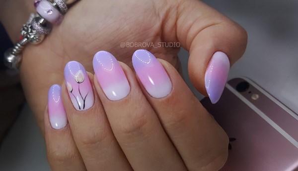 Chaque nouvelle saison printanière nous offre de nouveaux motifs utilisant des couleurs pastel, elles-mêmes douces et jolies. Manucure super tendre pour le printemps dans les couleurs pastel peut être effectuée dans monochrome sur les ongles, dans le style de ombre, géométrie, minimalisme, sans se surcharger avec un design complexe et complexe au printemps. Des micro-fleurs, quelques dessins de «fleurs aériennes», des traits abstraits ou quelques monogrammes romantiques donneront le ton au design printanier le plus en vogue aux tons pastel.