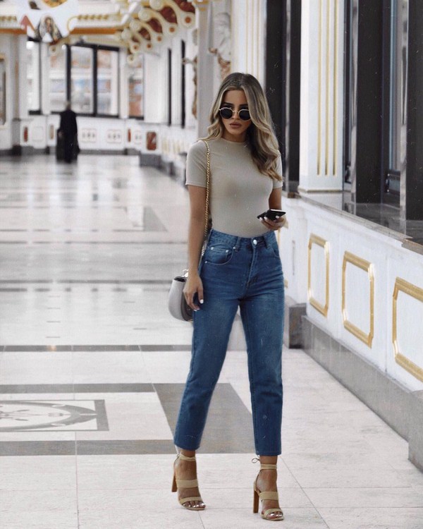 Ce jean tendance convient aux femmes grandes et élancées, aux hanches modérées. Les jeans classiques à la mode se combinent avec presque tous les hauts. Cependant, un grand nombre d'accessoires ne sont pas acceptables.