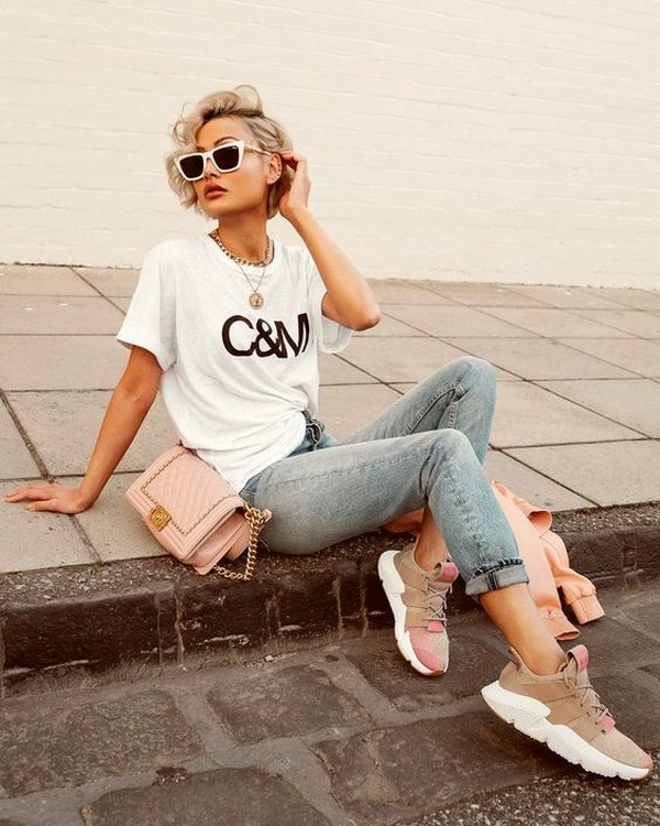 En choisissant un jean boyfriend à la mode, vous pourrez réaliser un look brutal et avant-gardiste, ainsi que créer un look tendance dans un style urbain. Un tel style convient particulièrement aux beautés fragiles, car il souligne avec succès la féminité de la silhouette. Vous pouvez combiner des amis avec des chaussures de sport et des chaussures à talons classiques.