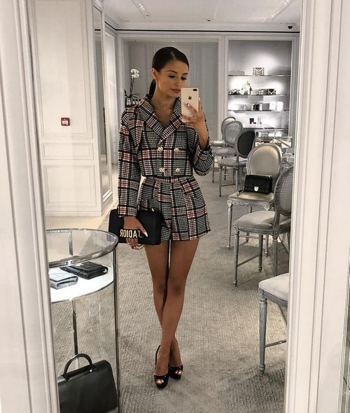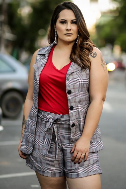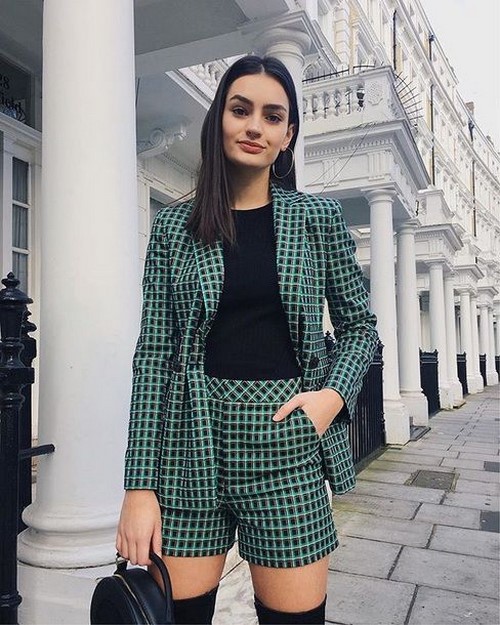 Les combinaisons cellulaires et à rayures avec shorts seront la solution appropriée pour les images de bureau, car elles ont l’air très élégant.