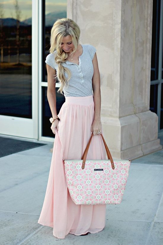 Les jupes longues à la mode peuvent être portées non seulement avec un haut concis et sobre, mais vous pouvez également combiner des jupes à la mode pour le sol et les années avec une veste en cuir, un top, un chemisier romantique, etc.
