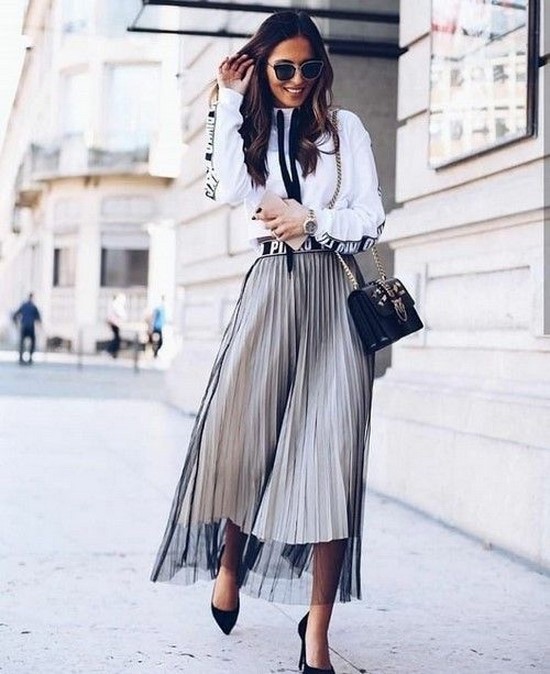 Mais les jupes courtes à la mode, bien qu’elles n’aient pas perdu de leur pertinence chez les filles aux jambes minces, nivelant les signes de vulgarité et d’hyper-sexualité, ont néanmoins cédé la place aux jupes midi, en tant qu’option plus raffinée et universelle.