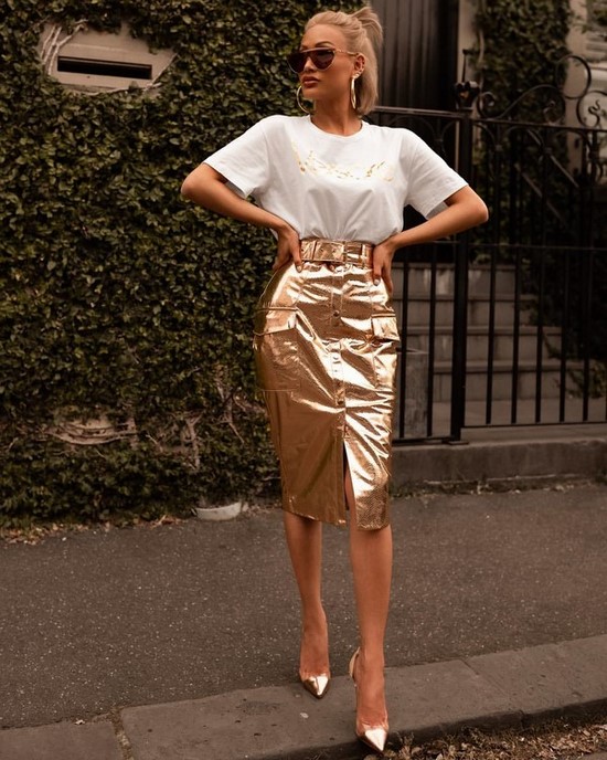 La tendance est maintenant aux jupes printemps-été à la mode dans différentes couleurs et nuances de style crayon, aux jupes coupe droite à la mode, ainsi qu'aux jupes en cuir à la mode qui ont acquis une immense popularité parmi les femmes en raison de leur capacité à simuler à la fois des affaires et des images très efficaces pour les fêtes. , marche.