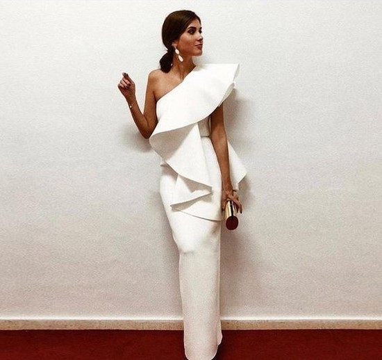 Ensuite, notre liste de robes pour cette fête continue avec de spectaculaires robes de Nouvel An sur une épaule.