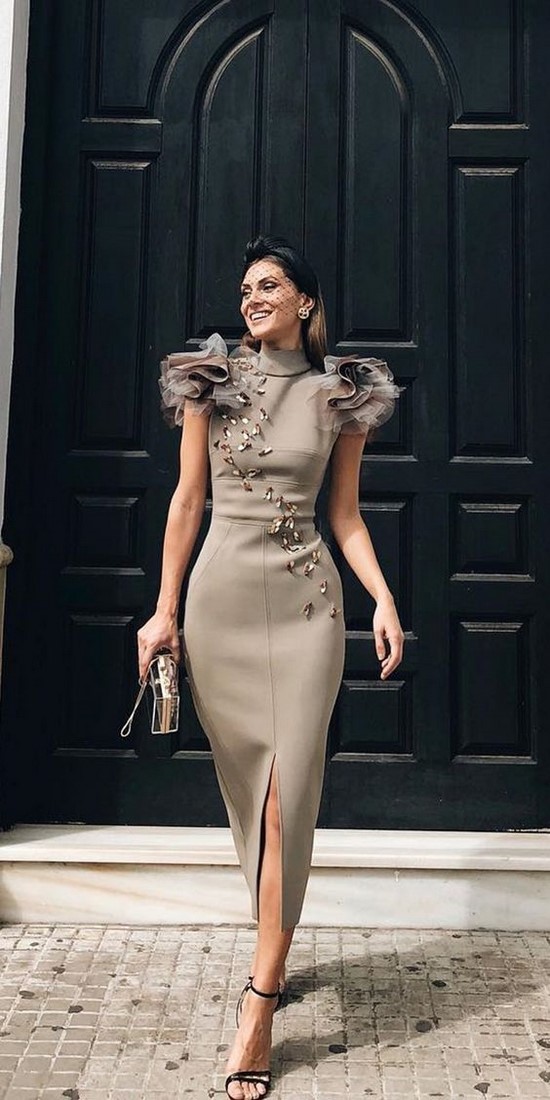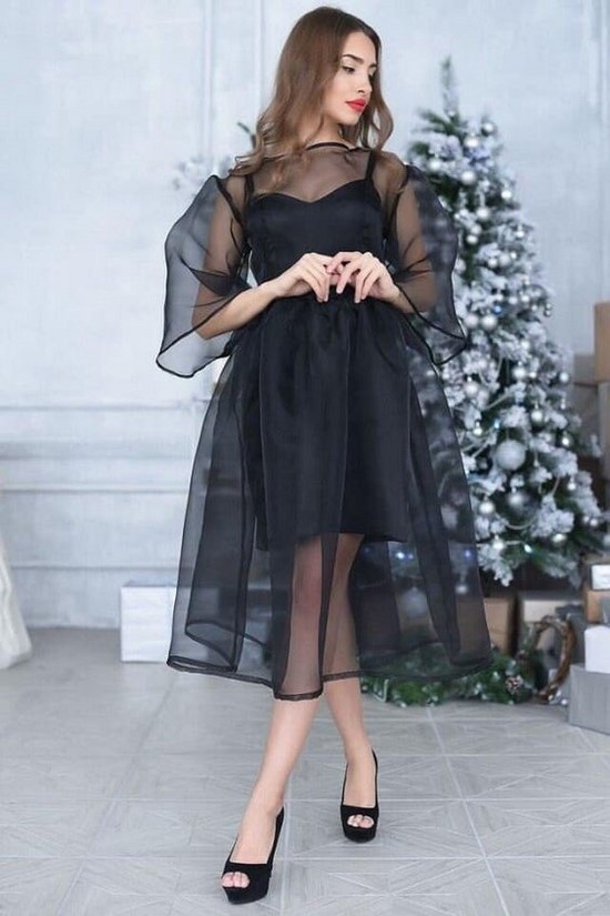 Autre nouvelle tendance qui transformera la mode de soirée, les robes du Nouvel An dans un style qui ressemble à la robe d’une femme.