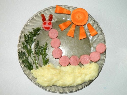 Une belle décoration de plats pour enfants devrait être lumineuse et intéressante. Étant donné que la conception des plats pour enfants est le plus souvent à base de légumes et de fruits, il est très réaliste de concevoir des plats lumineux pour les enfants.