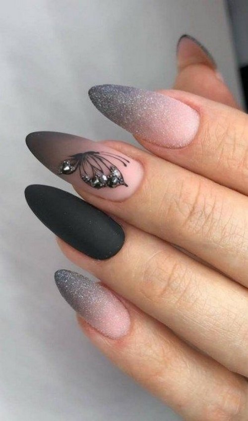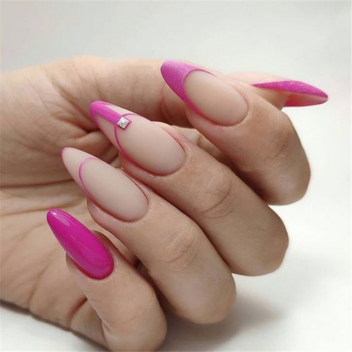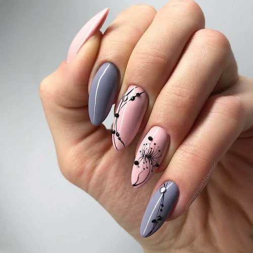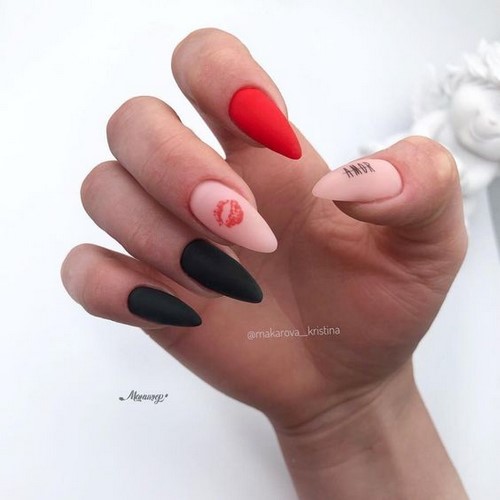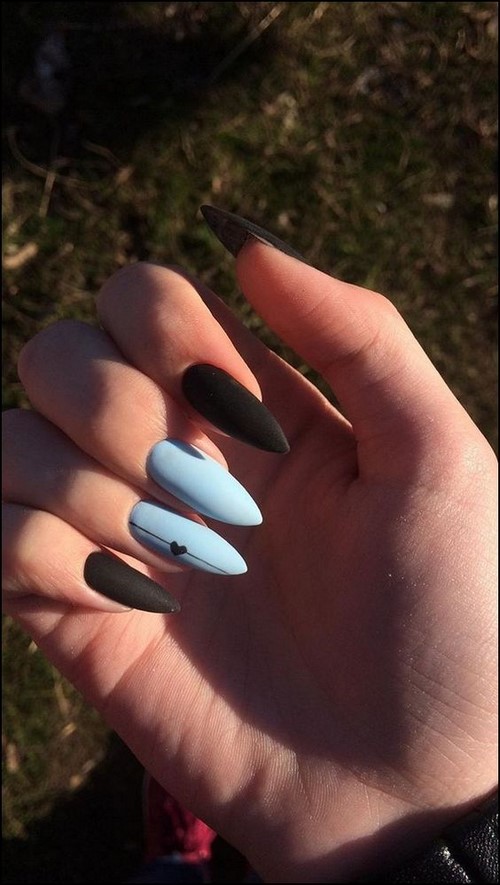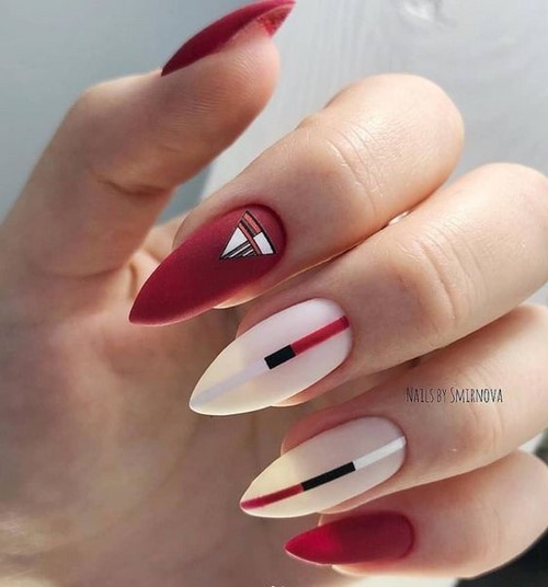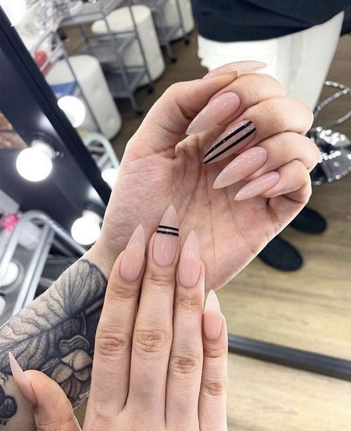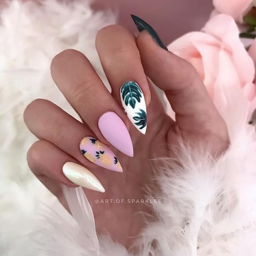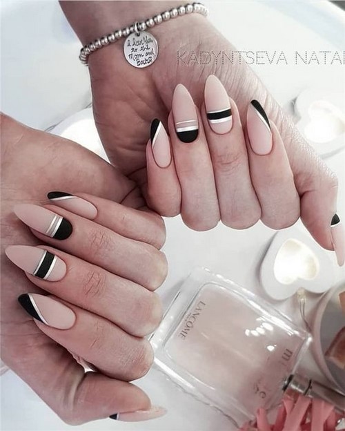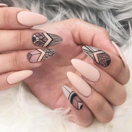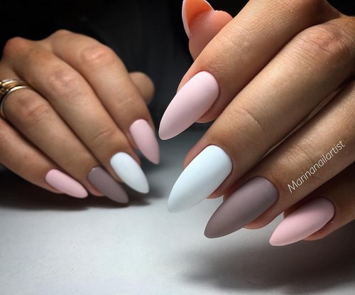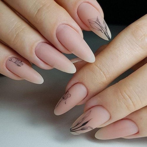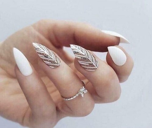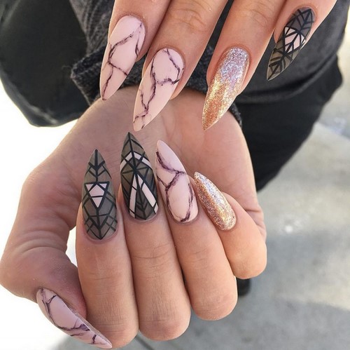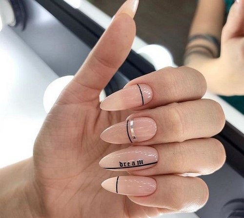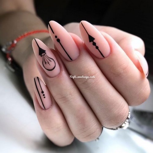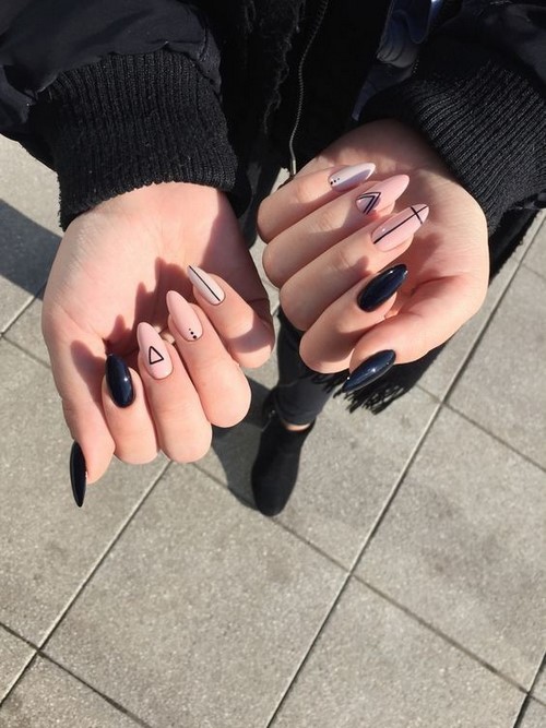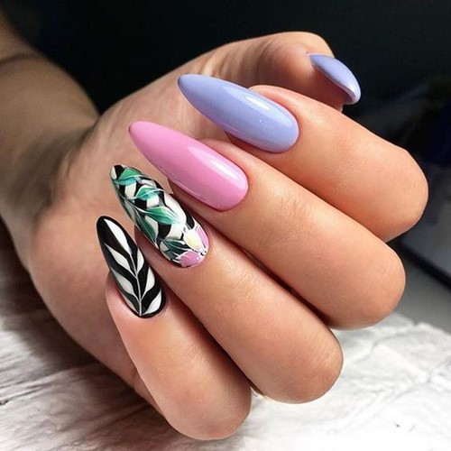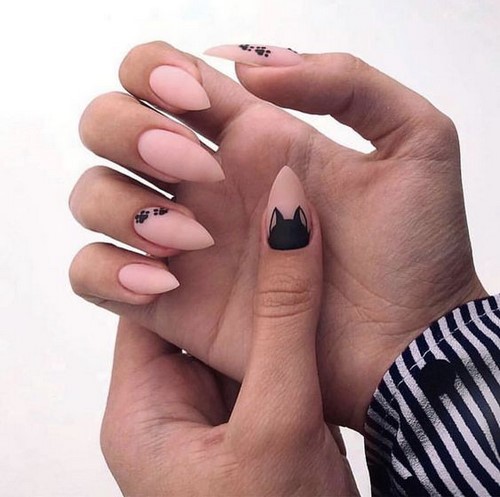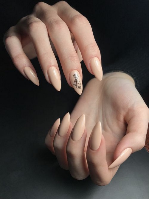 Sur les ongles pointus, vous pouvez appliquer n'importe quel motif à la mode pendant une saison donnée, mais en raison de la forme, les dessins flirty et mignons peuvent sembler un peu ridicules. Les maîtres conseillent donc de faire des ongles pointus un peu arrondis pour aplanir l'effet de netteté et le rapprocher de la forme. amandes.