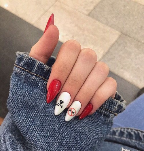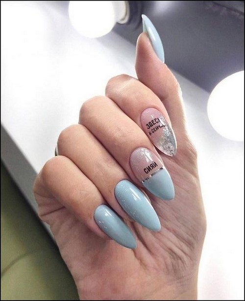 Veillez à essayer de recréer la meilleure manucure pour les ongles acérés avec des inscriptions et des dessins au pochoir, tendances dans les saisons à venir, en performance solo et en tandem avec des éléments de feuille, brillants, dessins, combinaisons de couleurs.