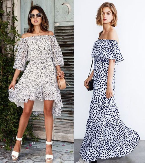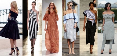 Une des tendances marquantes de la saison printemps-été concerne les «épaules ouvertes», en particulier les robes à épaules dégagées, ainsi que les chemisiers et les tops de ce style.