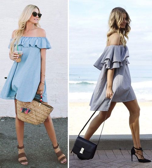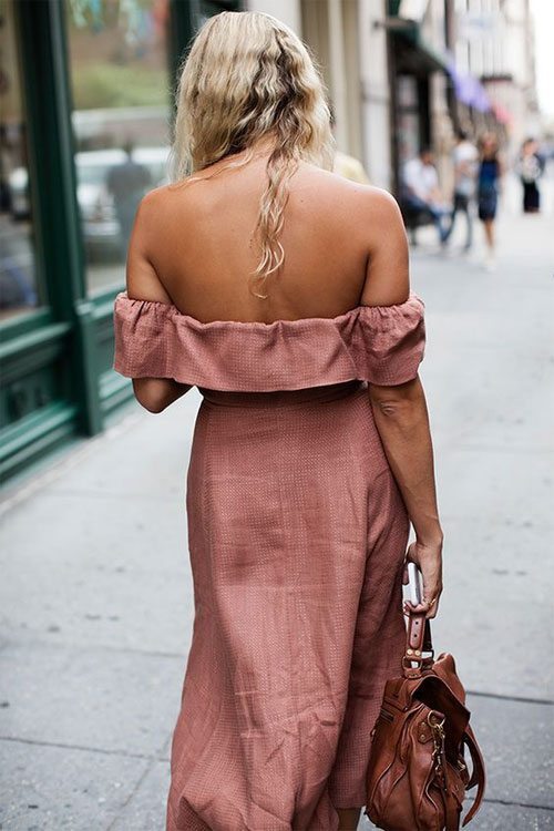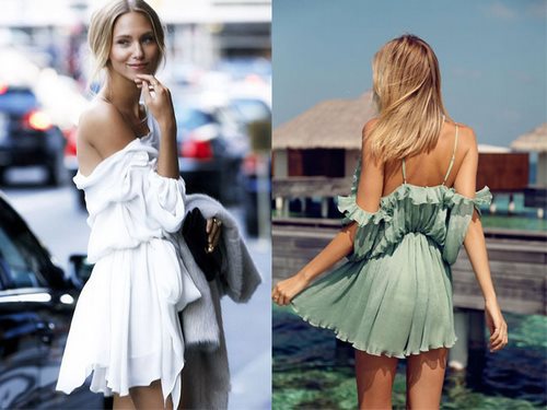 Les épaules ouvertes semblent inimitables et douces, nous vous conseillons donc d'acheter une robe dans ce style cet été.