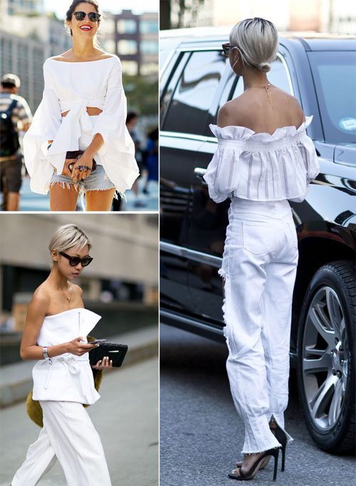 Les deux chemisiers à épaules ouvertes et les tops à épaules ouvertes peuvent être portés avec n'importe quoi, car la tendance des «épaules ouvertes» complétera très facilement et naturellement les pantalons, les jeans et les shorts pour femmes, ainsi que les jolis et élégants modèles de jupes de différentes longueurs.