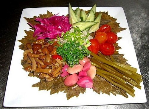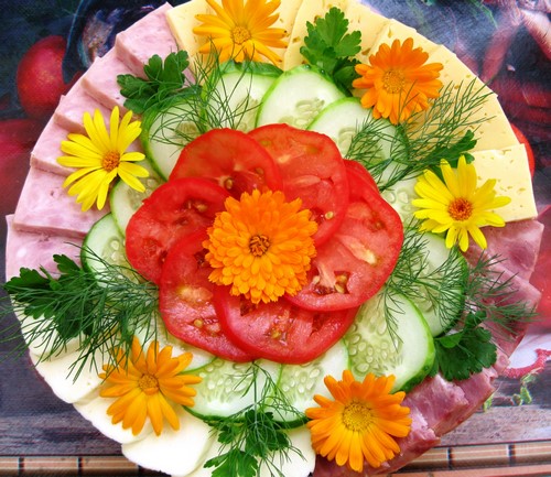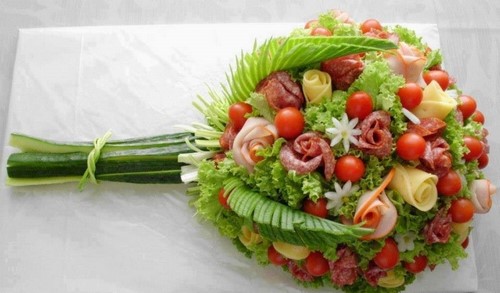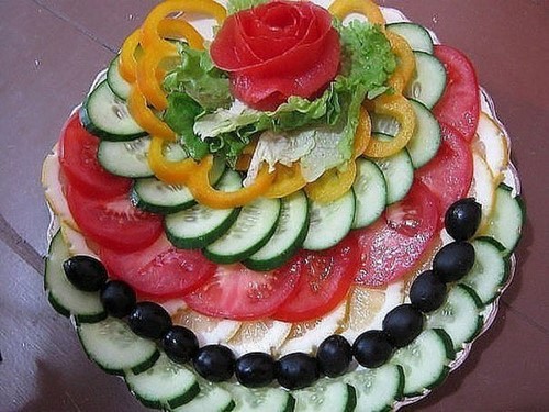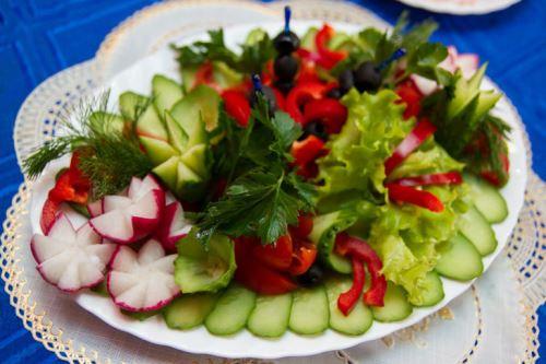Souvent, une coupe de légumes, dont chaque femme au foyer peut maîtriser la conception, est combinée avec de la viande, du fromage, des tranches de poisson, créant ainsi des collations originales et savoureuses sur la table de fête.