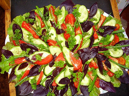 Les tranches de légumes peuvent être décorées non seulement avec de la laitue et du chou, mais également avec du persil, de l'aneth et d'autres types de légumes verts au goût de l'hôtesse.