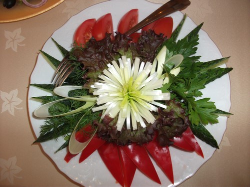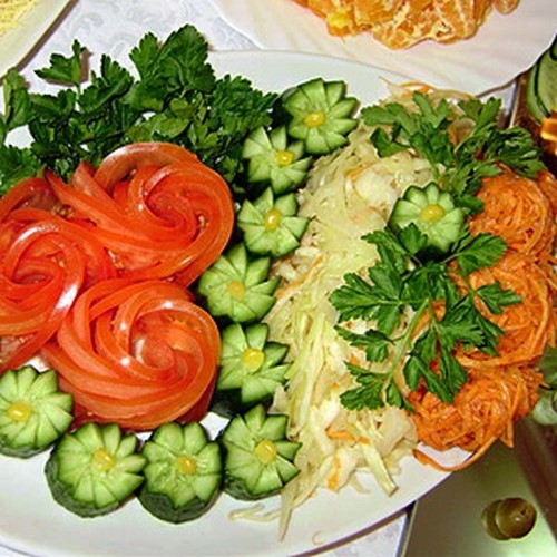 Si vous n'avez pas besoin de couper un légume ordinaire, mais un beau légume en tranches qui attirera l'attention avec son originalité, prenez en compte quelques secrets et subtilités sur la manière d'organiser un légume en tranches sur une table de fête.