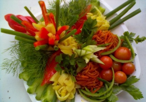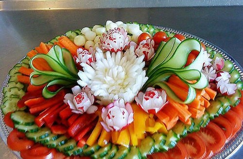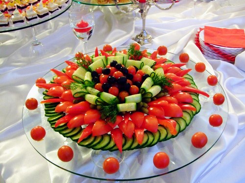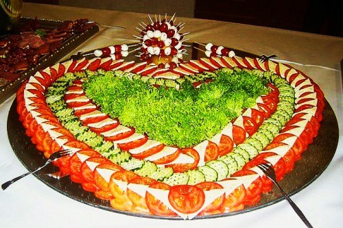 L'un des composants de la table de fête est une belle coupe de légume qui, avec des tranches de fruits et de viande, peut décorer n'importe quelle table de fête en lui donnant des accents éclatants.