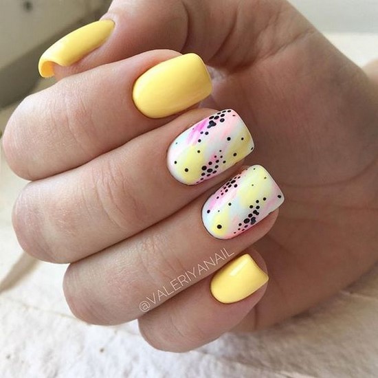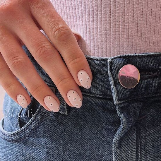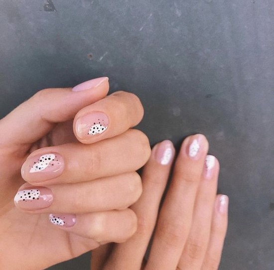 La manucure pastel à pois est également représentée par la technique des œufs de caille, qui joue souvent avec les contrastes.