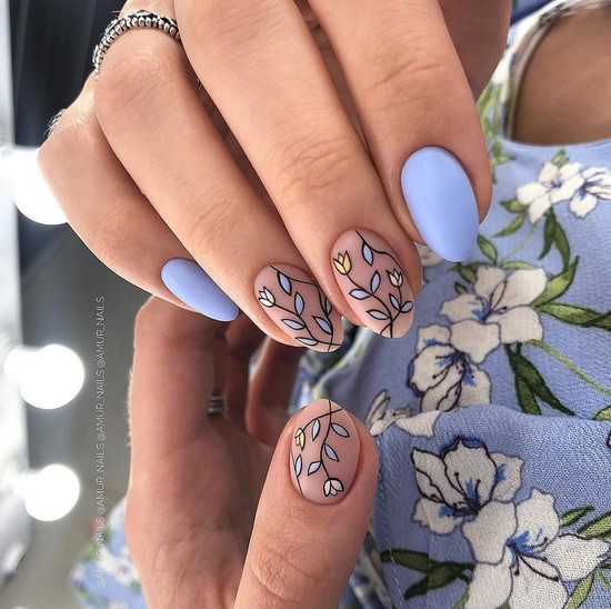 Vous pouvez décorer la manucure pastel 2025-2026 avec une exquise tendresse de motifs en utilisant les techniques d'estampage et de curseur, qui permettent de réaliser des fleurs, journaux, ornements, origami, inscriptions, etc. sensuels.