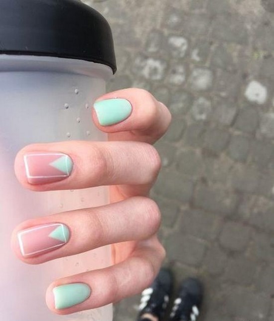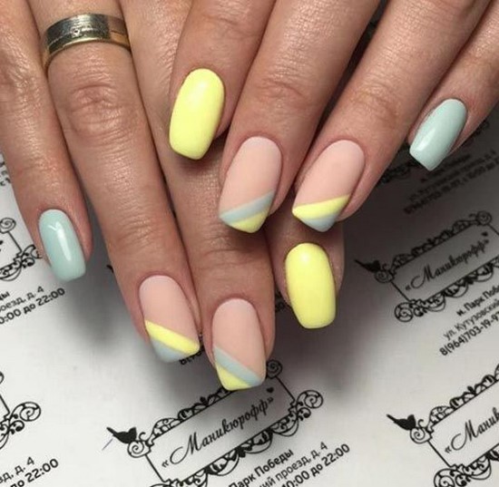 Si vous souhaitez obtenir une manucure au pastel à la mode de manière universelle, n'hésitez pas à choisir des motifs géométriques et des techniques abstraites.