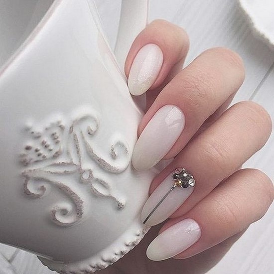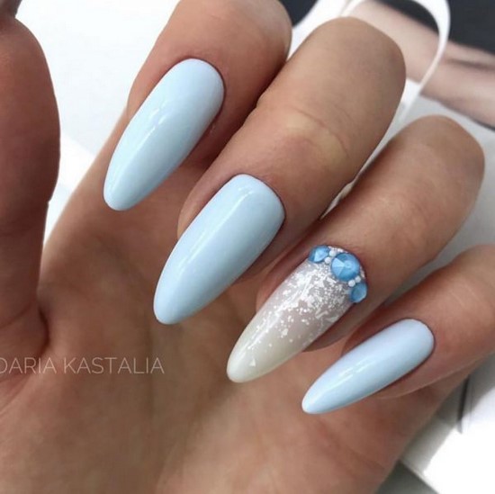Les strass sont également capables de donner du luxe aux ongles dans des tons pastel, surtout si vous utilisez non seulement du brillant, mais également un dessus mat, du sable poudré et une technique française supérieure.