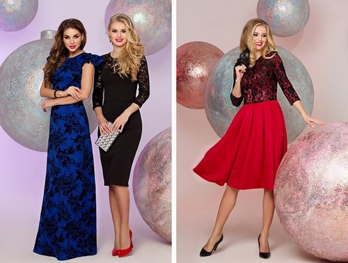Il est préférable de rendre hommage à des modèles tels que les belles robes pour le Nouvel An de type cocktail, principalement de longueur midi, car les stylistes vous conseillent de vous couvrir les genoux avec des modèles ajustés laconiques, des styles maxi droits.