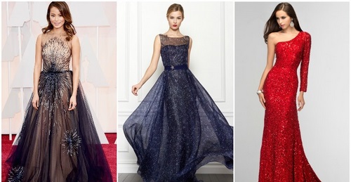 Notez que les robes pour le réveillon du bal peuvent être décorées avec des paillettes, de belles broderies, des pierres, des applications inhabituelles, des plumes et duvet, des franges et autres éléments typiques de cette tenue.