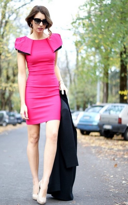 Les robes roses de différentes nuances de saturation, combinées au noir, au bleu et au doré, deviendront un couin à la mode.