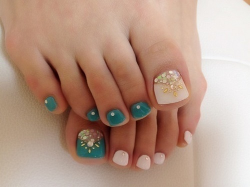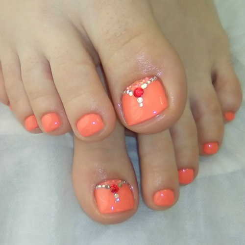 Bien que la pédicure monochromatique en ait déjà un peu marre, vous pouvez créer la pédicure la plus en vogue en combinant des vernis à base de gel monotones avec des accents clairs sur un gros clou.