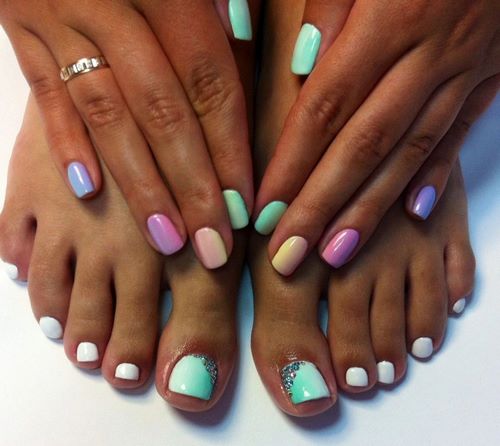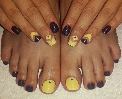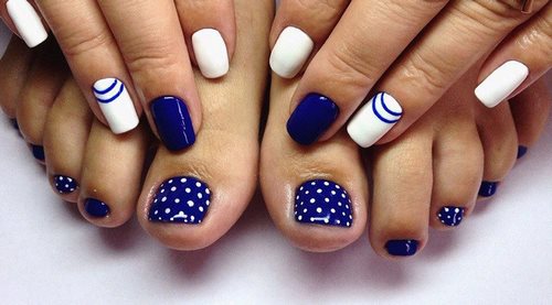 En fait, la pédicure la plus en vogue reflète les tendances actuelles et les décisions en matière de droit d'auteur en matière de manucure. Ainsi, un design similaire et un design contradictoire pour les ongles des mains et des pieds sont possibles dans toute interprétation.