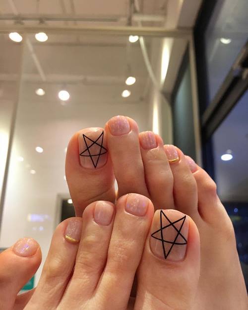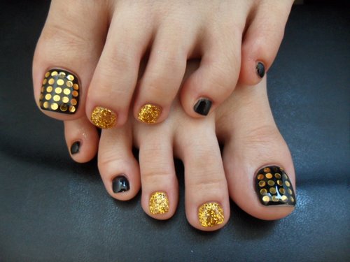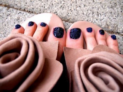 Si vous souhaitez transformer votre conception de pédicure en couleurs sombres, décorez-la de paillettes, d'un motif de galets, de confettis et obtenez un résultat magnifique et unique sur les ongles de vos jambes.