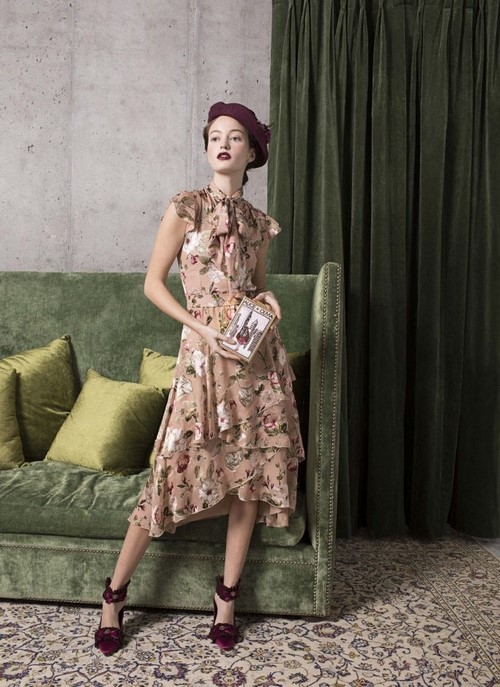 Parmi les nouveaux produits figurent des robes chics printemps-été avec des imprimés floraux, des robes de soirée impeccables pour les pores chauds, ainsi que des modèles sophistiqués avec des combinaisons de tissus contrastées.