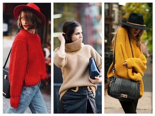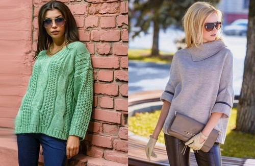 En règle générale, les chandails tricotés surdimensionnés sont fabriqués à partir de gros tricot. Ils cachent idéalement de petits défauts dans la figure, trahissant la silhouette d'extraordinaire.