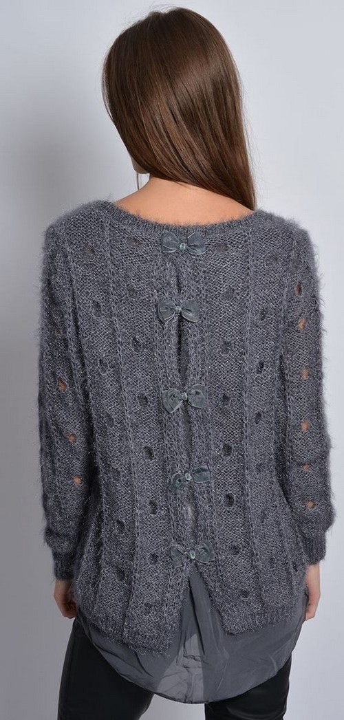 Une autre tendance parmi les tricots est le sweat-shirt au crochet, qui est également fait à la main et a l’air très original et à la mode.