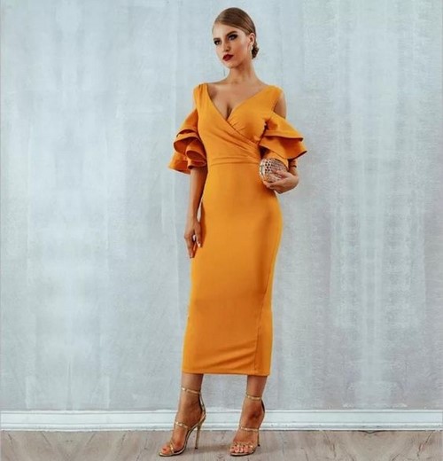Si nous considérons des robes jaune chaud ou des modèles à manches longues, de tels exemples ont également été proposés par les concepteurs.