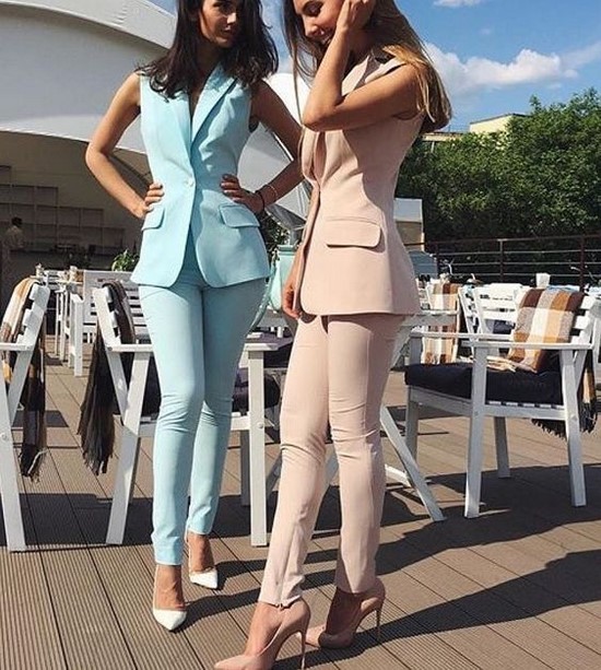 Les costumes à la mode pour les femmes pour l’été sont des costumes pour femmes avec pantalons, des costumes avec une jupe et un gilet, de beaux costumes avec une robe fourreau classique et une veste légère.