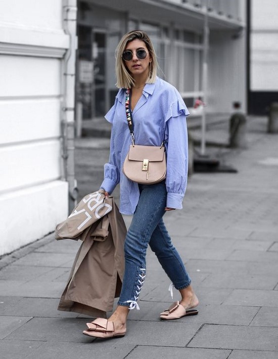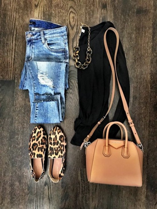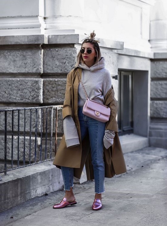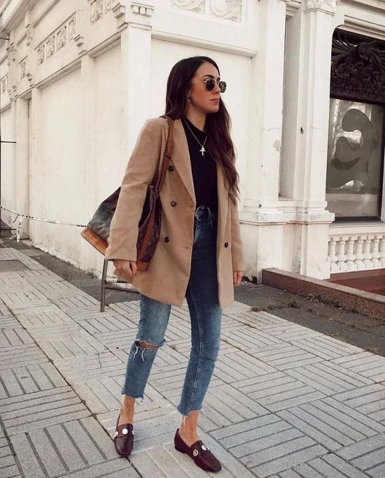 Les mocassins pour femmes avec différents types de jeans ont un look spectaculaire qui, au printemps et en automne, peut être combiné à de magnifiques trenchs imprimés.