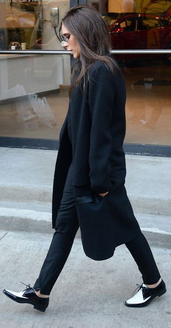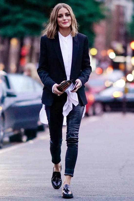 Et comment aimez-vous l’idée de porter des mocassins avec un pantalon en cuir, des bananes, des jupes en cuir fendues, et s’il faut choisir des mocassins brillants et insolites, en les complétant avec un ensemble maximum, simples en termes de couleurs? Élégant, n'est ce pas.