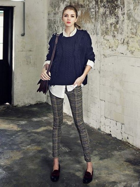 C’est pendant une telle période que les mocassins peuvent être portés avec des tricots d’extraordinaire créativité, en particulier si, en prenant un pull ou un cardigan en tricot, vous optez pour une belle jupe crayon ou asymétrique dans un imprimé à carreaux populaire.