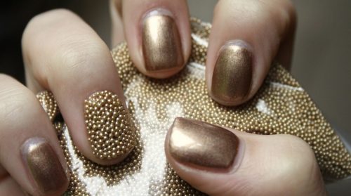 La prochaine manucure dorée intrigante peut être créée à l’aide d’une microbille, très similaire aux œufs de poisson.