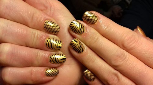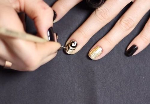 Vous pouvez obtenir un effet doré à l’aide de différents décors de manucure, dont l’un est considéré comme frottant.